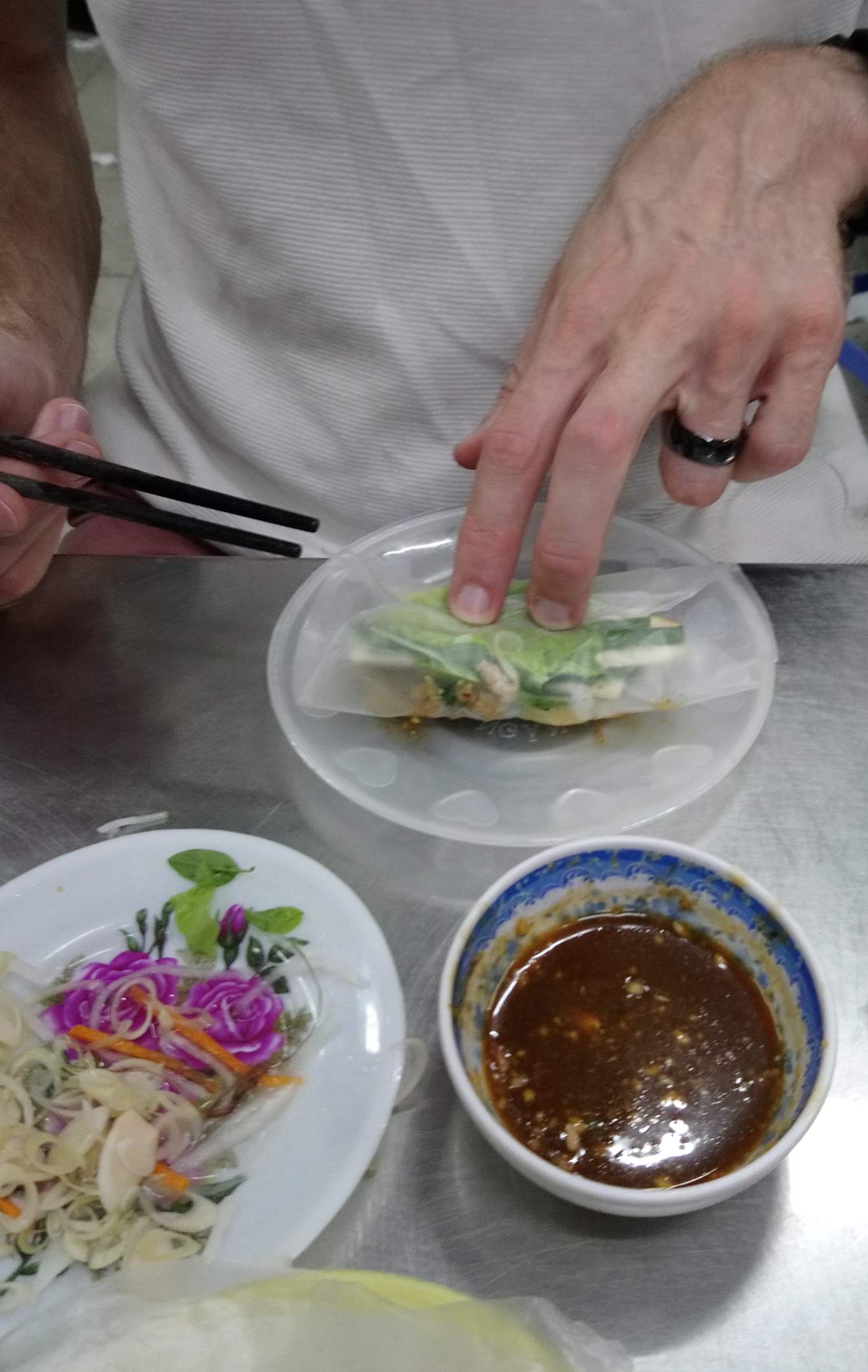 After an unsuccessful attempt at visiting the war museum, which was also shut for Tet, we headed back to our hotel for a nap after our early start that morning. Following another recommendation from Ân, we went to a restaurant for dinner where you can make your own spring rolls. This was perfect for me as it meant I could avoid all the fresh herbs I don’t like! I’m not sure we quite perfected the technique for rolling them, but I don’t think we disgraced ourselves either!