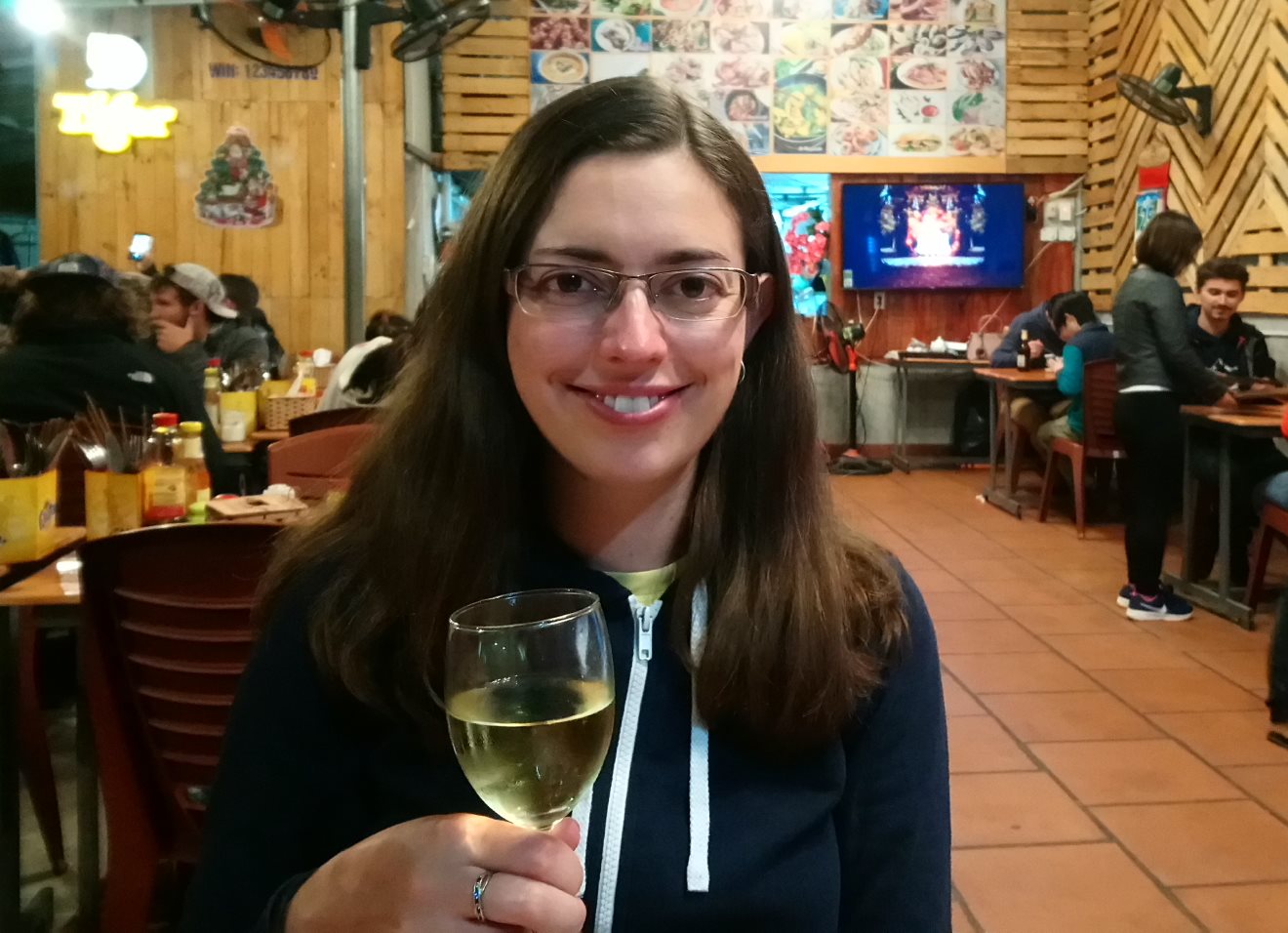 That evening, we went to a restaurant recommended by the climbing instructors, which was back into town at the top of the hill. The food was tasty, and I particularly enjoyed a glass of white wine produced in Da Lat, which was not too sweet but not very acidic either. Perfect!