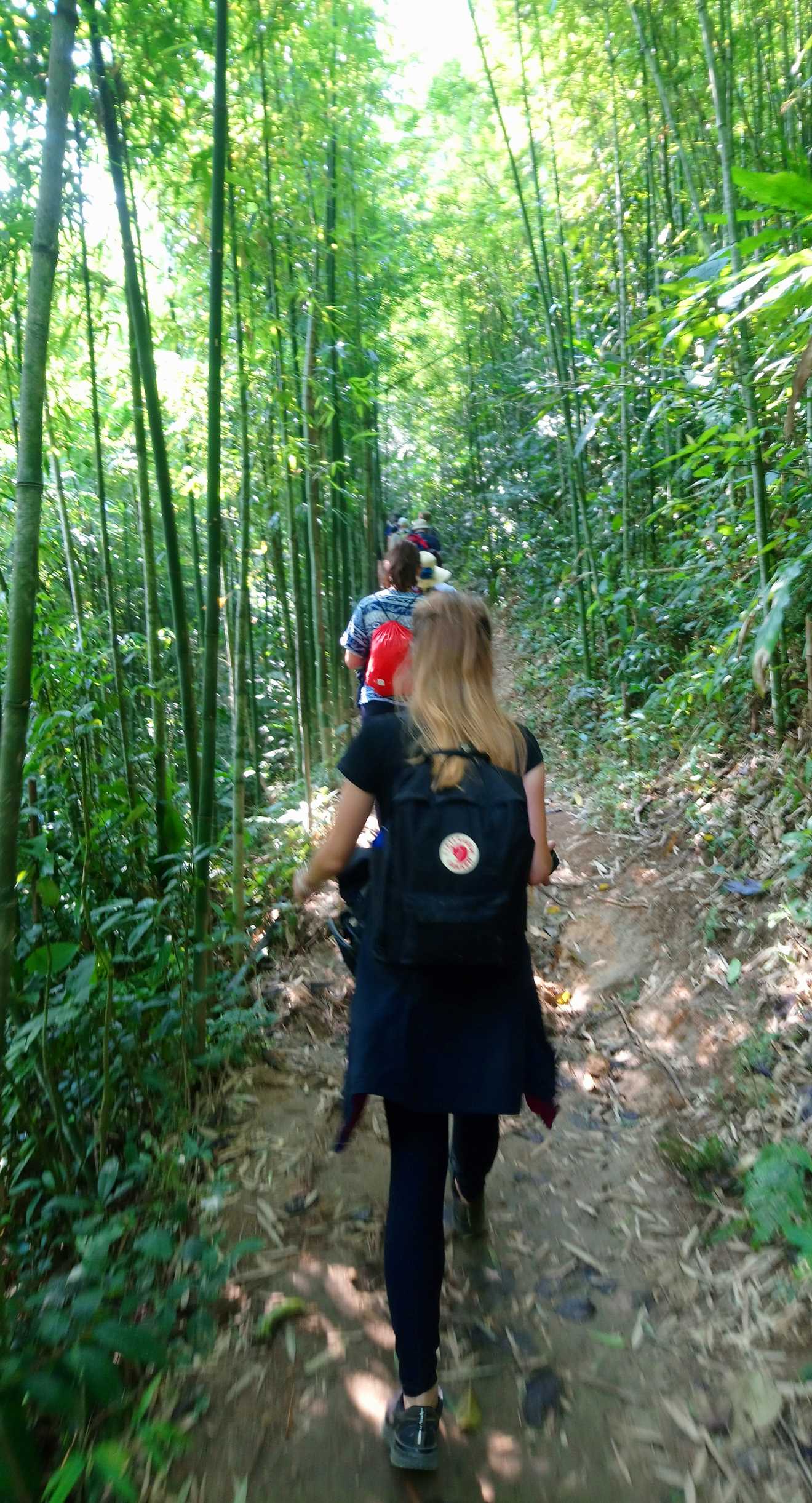 The next day our guide met us to take us on a walk to a nearby waterfall. We were joined by some other people staying at the homestay, as well as a little puppy that followed us most of the way! We walked through a bamboo forest before emerging onto a big rock slab and the waterfall.