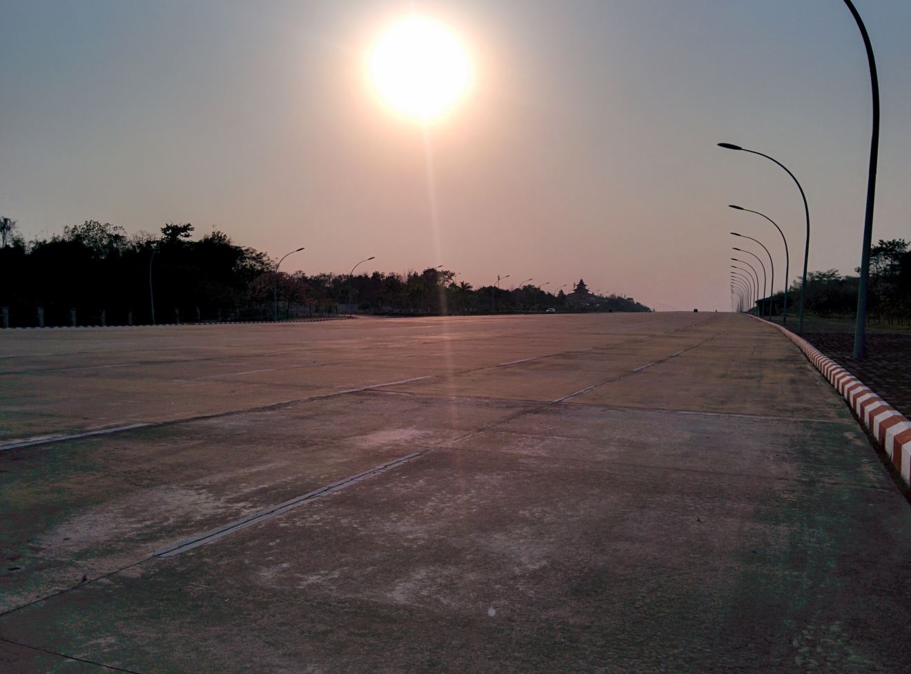 We continued past many lotus-topped roundabouts to the 20 lane motorway. This was simply ridiculous. The first section had a central reservation separating the two ten lane carriageways, but if you drove a little further on this disappeared, leading to a simply massively wide slab of concrete. Again, it was practically deserted. I felt like I could have been in a running or swimming race and everyone had their own designated lane. You could see evidence on the road where people had done doughnuts.