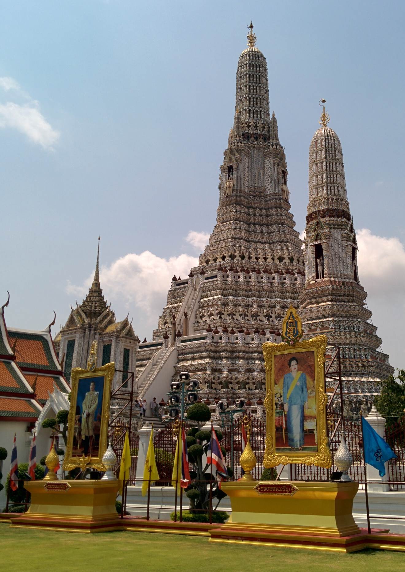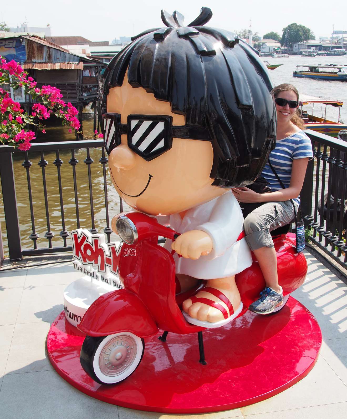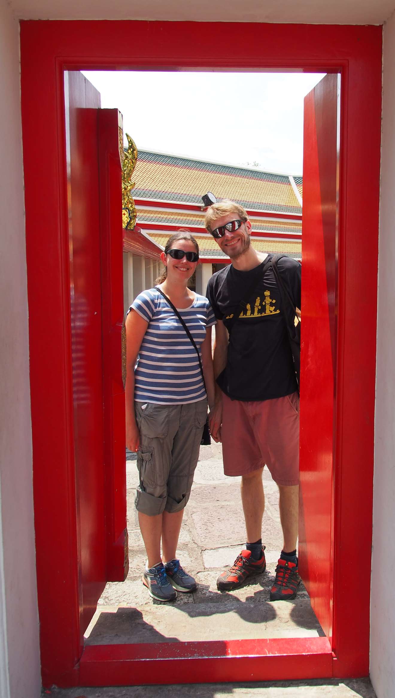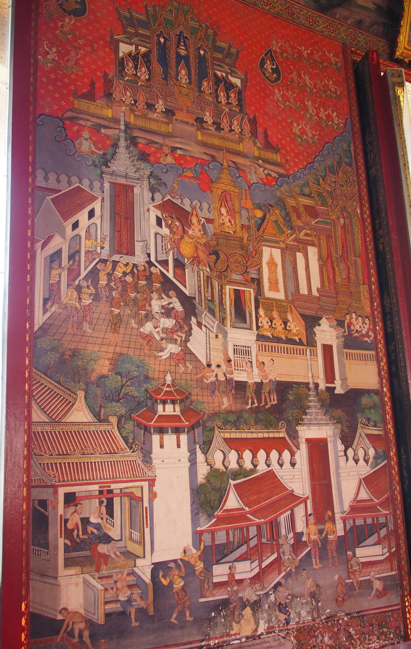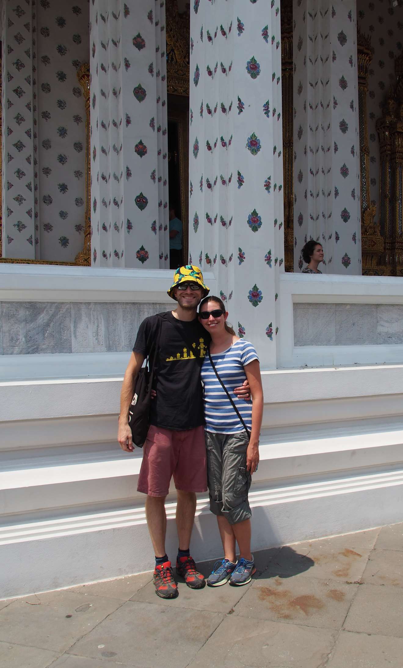 The next morning we did some washing, then met up with Jase and took the boat along the river to Wat Arun. This was a really pretty Buddhist temple with floral pillars and some fancy murals on the walls inside the shrine.
