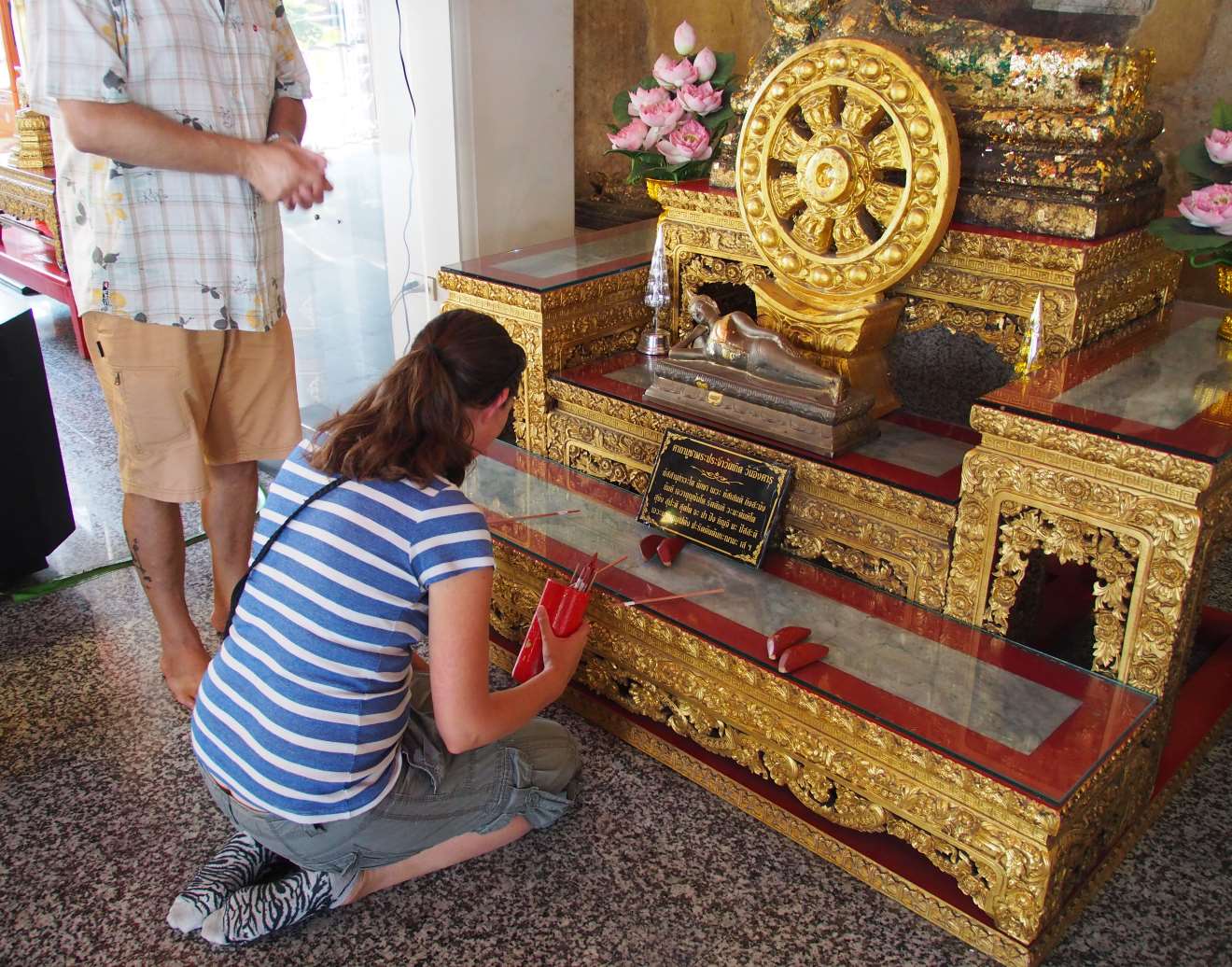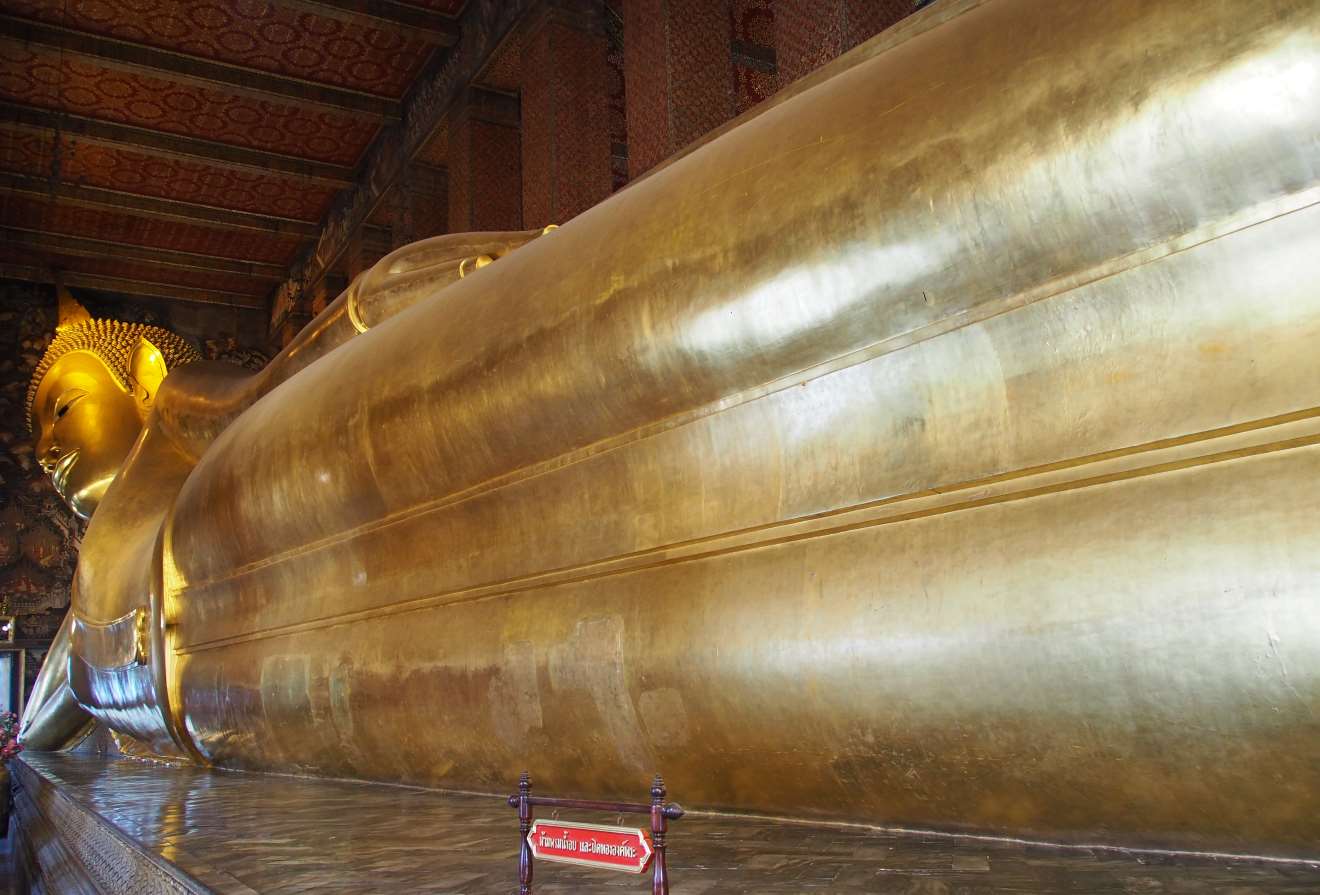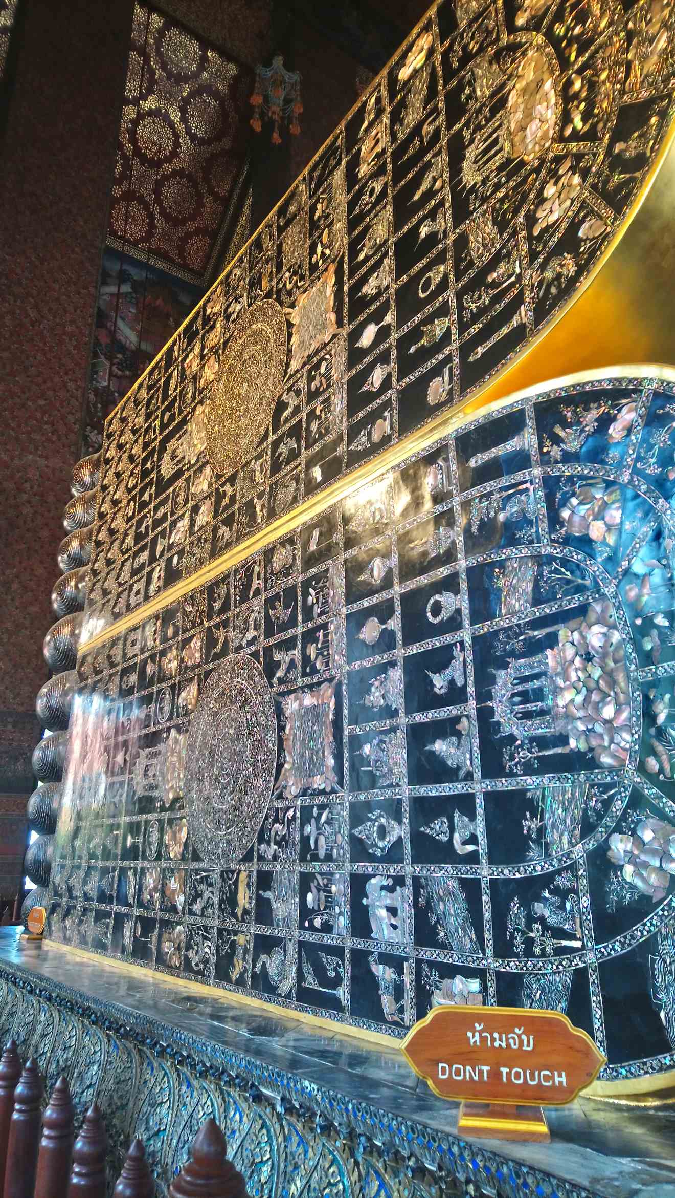 The complex is pretty big and we wandered around looking at the various intricately decorated shrines. However, the main attraction is the world’s largest reclining Buddha. It’s huge, with giant feet decorated on the base with mother of pearl.