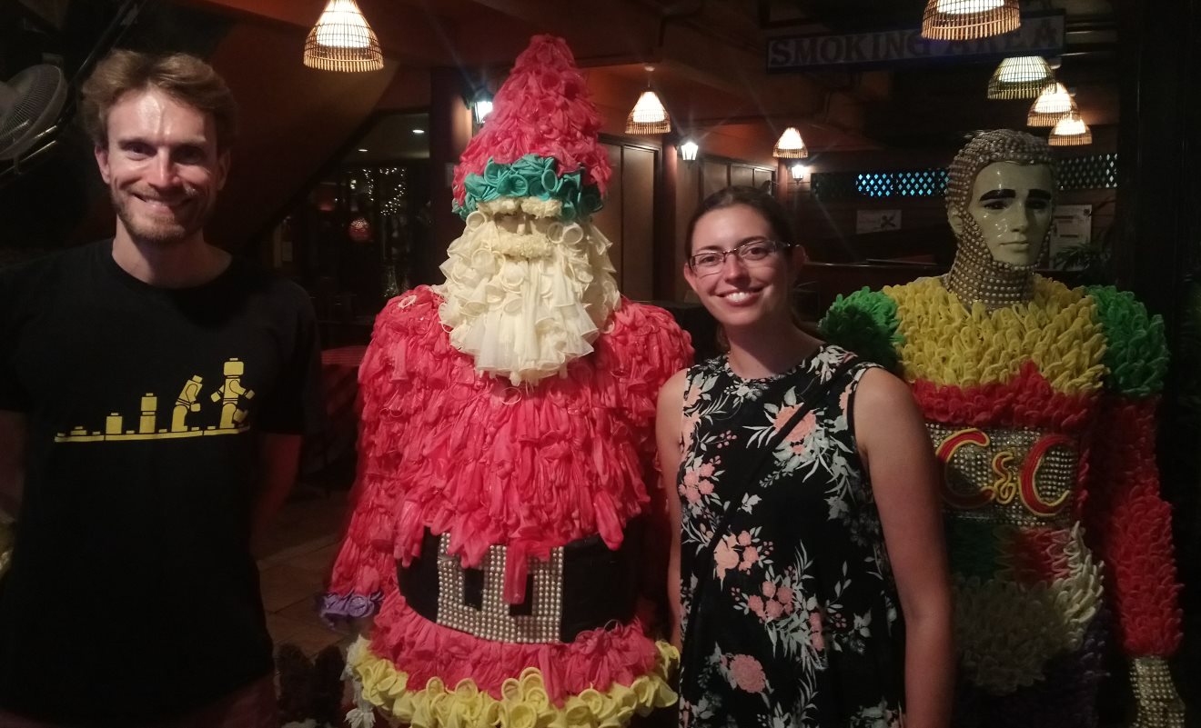 Now when Jase said we were going to a place called Cabbages and Condoms, I have to say, with us being in Bangkok, I was a bit worried about where he was taking us! But the restaurant was actually set up to highlight the issues of sexual health being faced particularly by Thai women. The idea is that condoms should be as readily available to people as cabbages. The restaurant is uniquely decorated using condoms and it’s a really buzzing place. The food was very tasty too. A very good recommendation!
