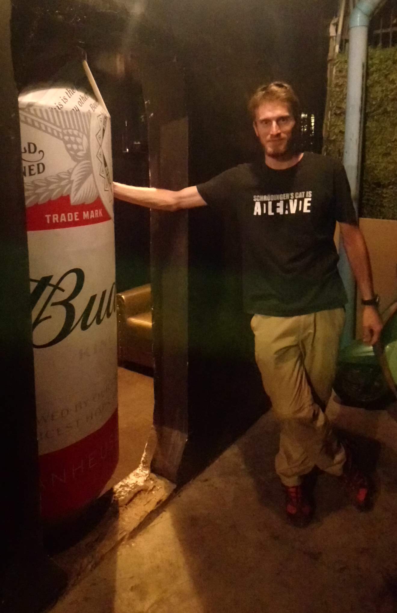 Our third brew pub was near the hostel and had a number of pool tables so we spent a bit of time there before wandering to the riverside. We (eventually as the door was confusingly shaped like a can of Budweiser!) found a great bar called 5 Drunk Men which was on the fourth floor overlooking the river. They had some electronic dart boards, which were great as you didn’t have to do the maths! Neither of us were particularly good and I got a bit overexcited when I finally threw the winning dart, causing the whole bar to turn round to look at me!