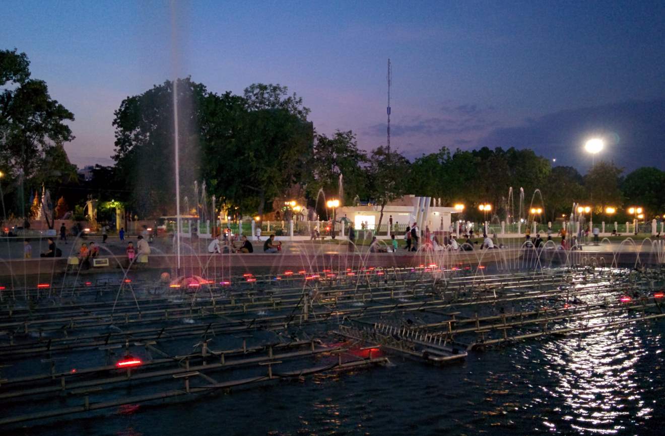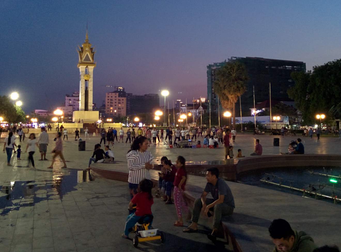 We still had a couple of hours of daylight left when we arrived in Phnom Penh so we went for a wander to get our bearings. Our hostel was to the south of the city, by the Independence Monument so we went to check that out. We ended up wandering through two park areas, full of locals playing hacky sack, attending exercise classes or using the outdoor gym equipment. It was a great place for people watching and had a lovely atmosphere. There was also the most fancy water fountain I’ve ever seen, it was great to watch!