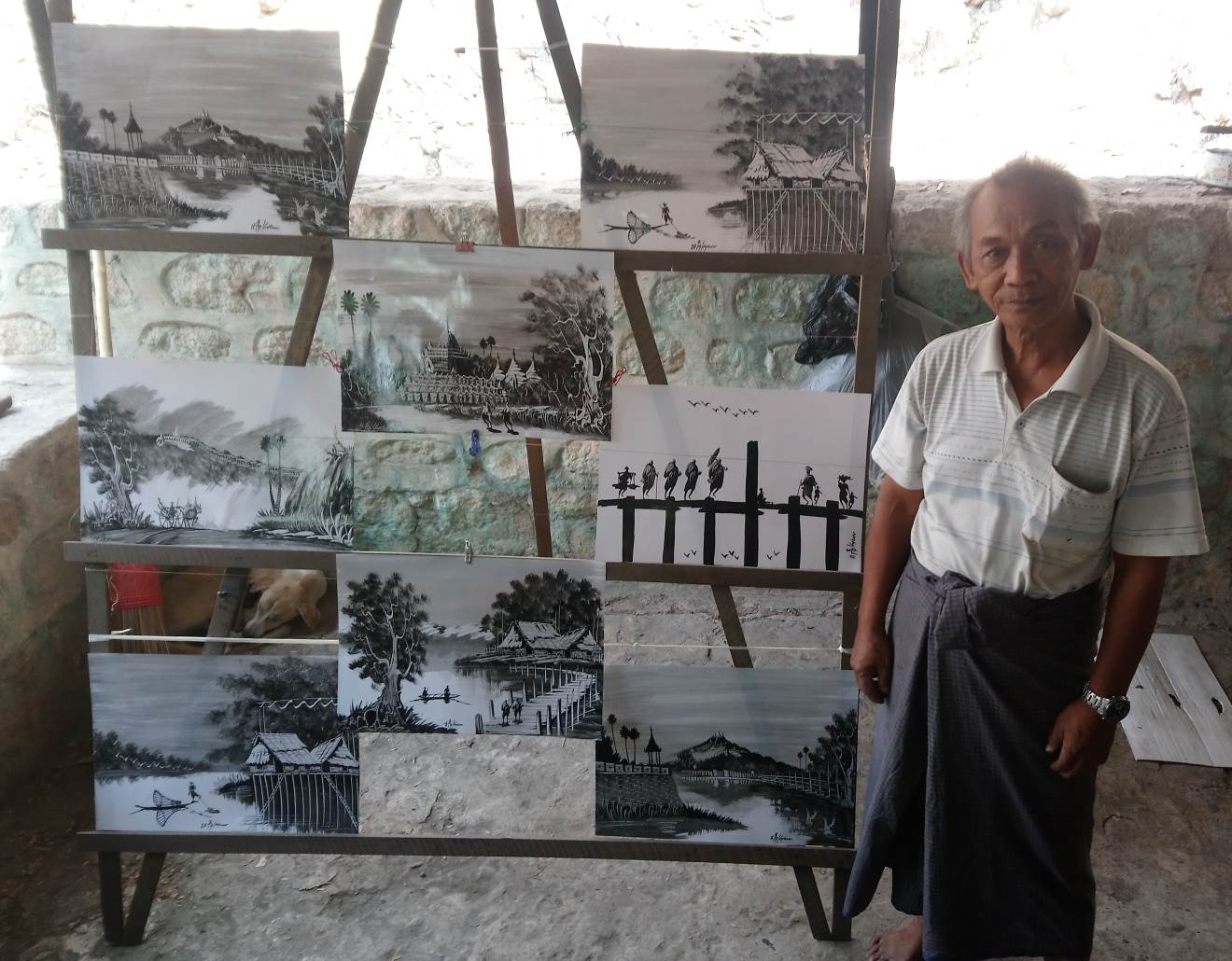 On the way back down we came across two very small puppies, who even me as a non-animal lover, found pretty cute! We also bought a few pictures of places we’d been in Myanmar, made with paint and a razor blade on photographic paper.