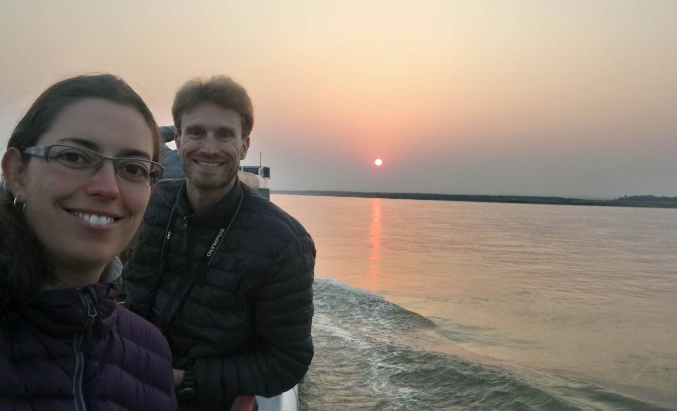 Our second pre-dawn start in two days saw us down at the Irrawaddy River at 5am, attempting to board a boat from the beach using a plank, in the dark, carrying all our luggage! It was no mean feat!