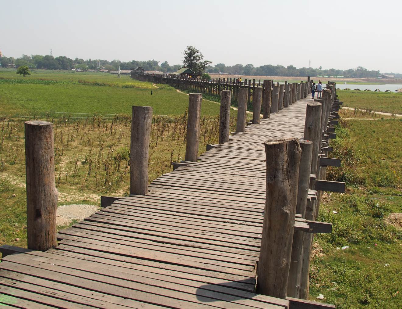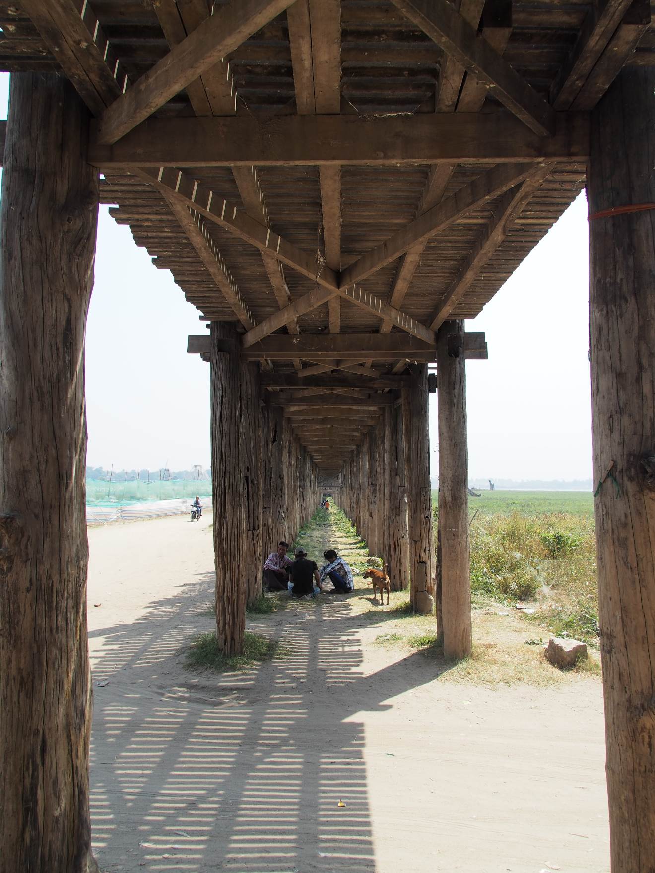 We continued south to U Bein Bridge, a wooden structure that would utterly fail to pass health and safety in the UK! It’s the most photographed spot in all of Mandalay, with tourists mainly turning up for sunrise and sunset. I’m really glad we were there at lunchtime as it was less busy and meant we were less as risk of being bumped off the bridge as it had no sides to it!